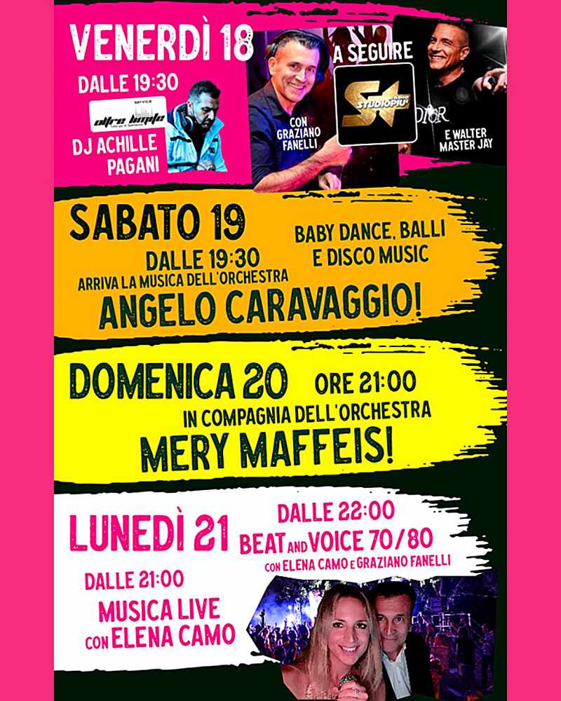 Quattro serate di pura allegria nel parco di Olfino, dove potrete gustare il mitico “polastrel su la gradela”
