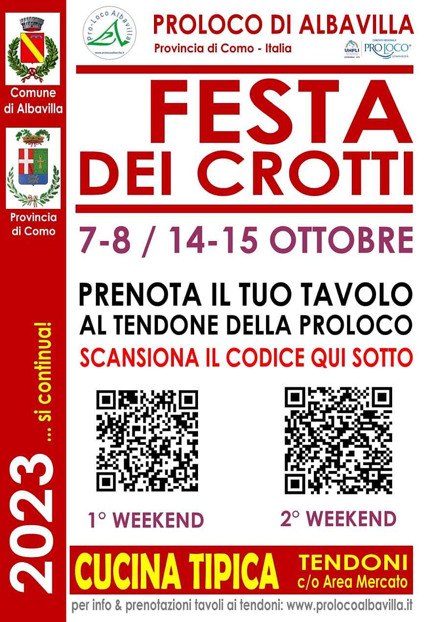 Crotti aperti il Sabato dalle 17.00 e domenica dalle 9.00