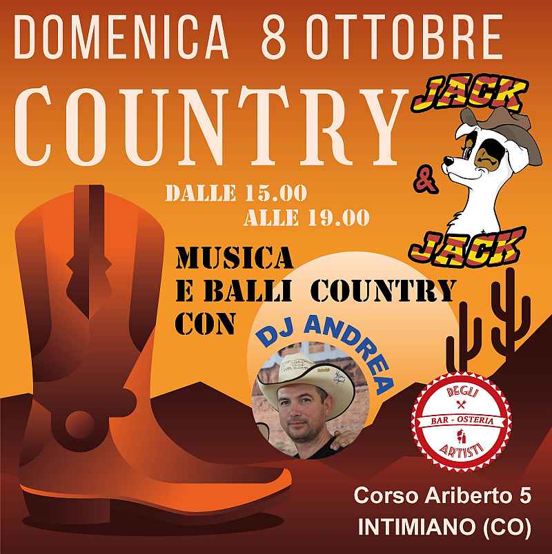 Musica e balli country domenica 8 ottobre dalle 15.00 alle 19.00