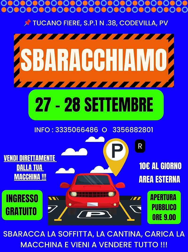 presso il Tucano Fiere di Codevilla (PV), vendi direttamente dalla tua auto e SBARACCA tutto quello che non utilizzi e non ti serve più.