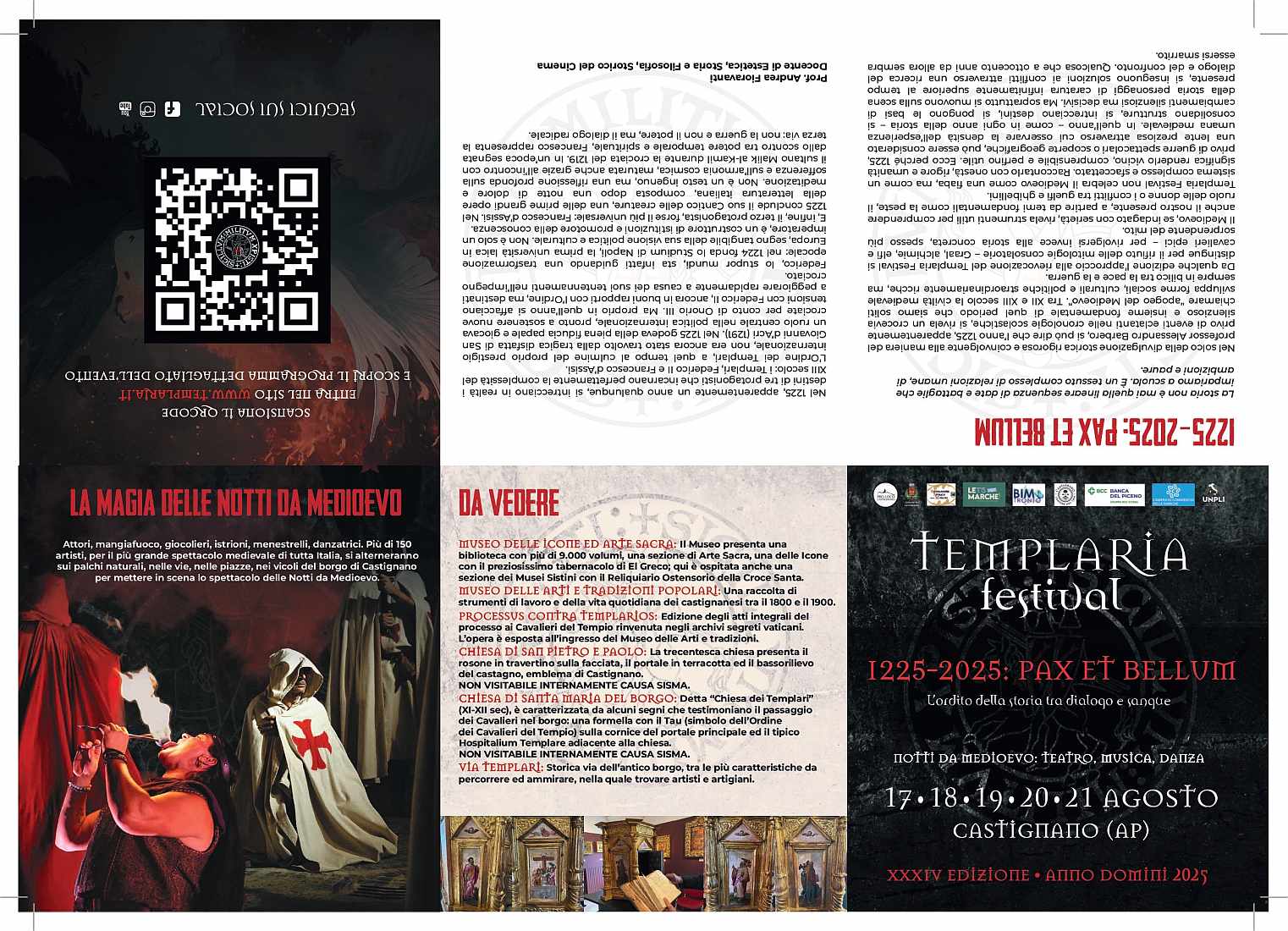Insomma, Templaria Festival, un evento diventato ormai un appuntamento fisso delle estati marchigiane e con un’eco addirittura a livello nazionale, ancora una volta utilizza la lente della storia per riflettere e confrontarsi su temi di attualità; uno sguardo sul passato per aprire una riflessione attuale, in linea con la propria vocazione: fare storia per capire il presente.