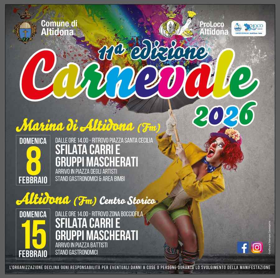Coriandoli, musica e tanta voglia di stare insieme! Altidona si prepara a festeggiare il Carnevale 2026 con una giornata dedicata al sorriso.