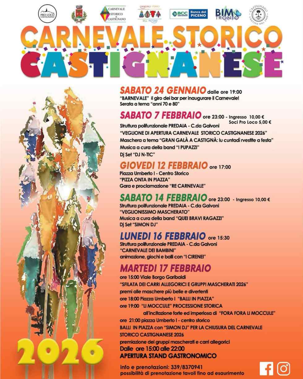 Veglionissimi: Le serate danzanti presso il Teatro Comunale sono un altro pilastro della tradizione castignanese, dove l'eleganza e il divertimento si fondono fino all'alba.