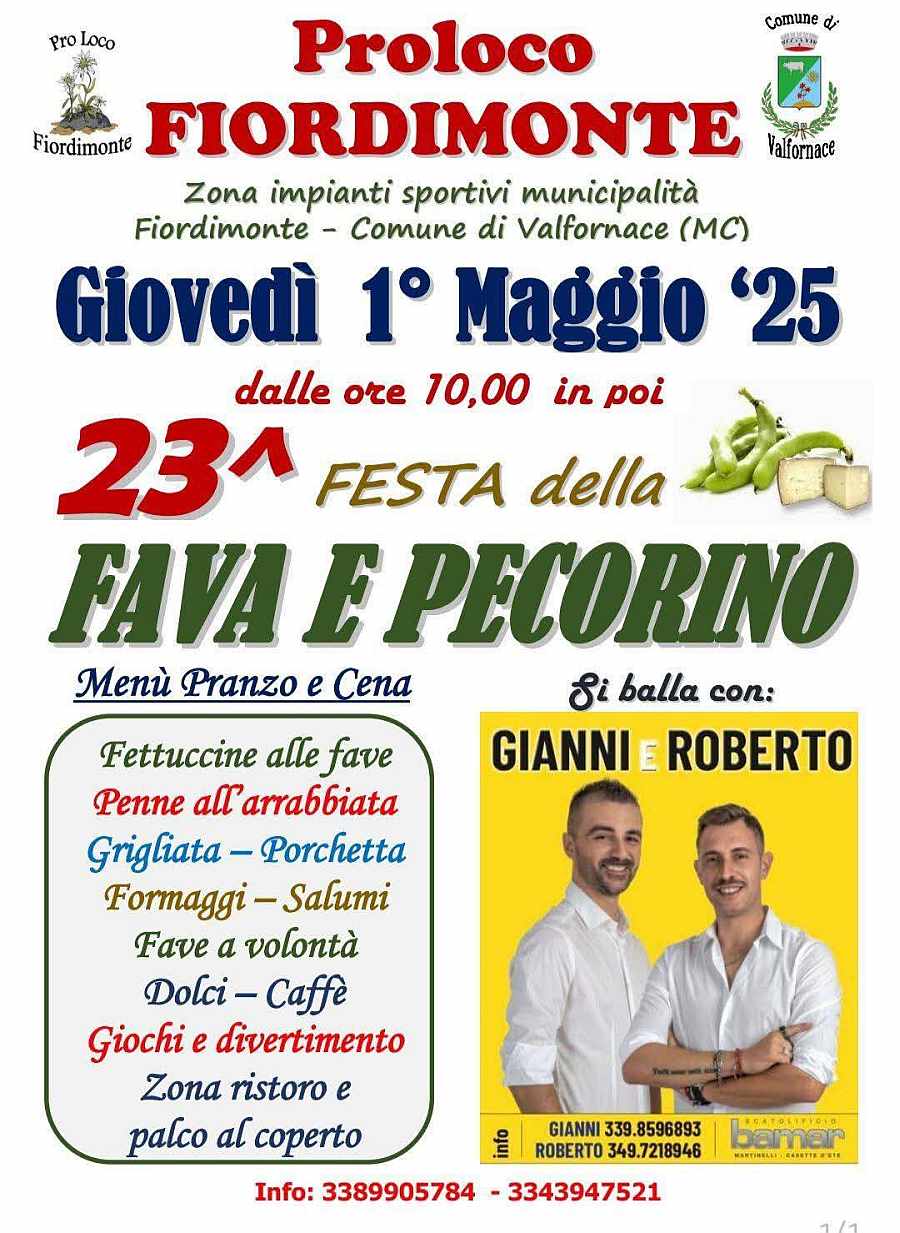 Fiordimonte (MC) "Festa della Fava e Pecorino" 1° Maggio 2025