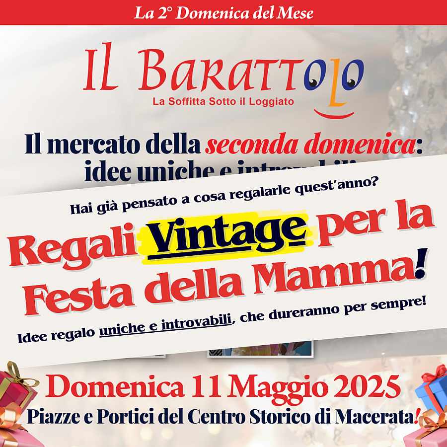 DOMENICA 11 MAGGIO, nel cuore di Macerata (MC), il Mercato "Il Barattolo" ti aspetta con un'incredibile selezione di capi e accessori vintage rigorosamente originali, pregiato artigianato, vero fatto a mano e pezzi di antiquariato e modernariato unici!