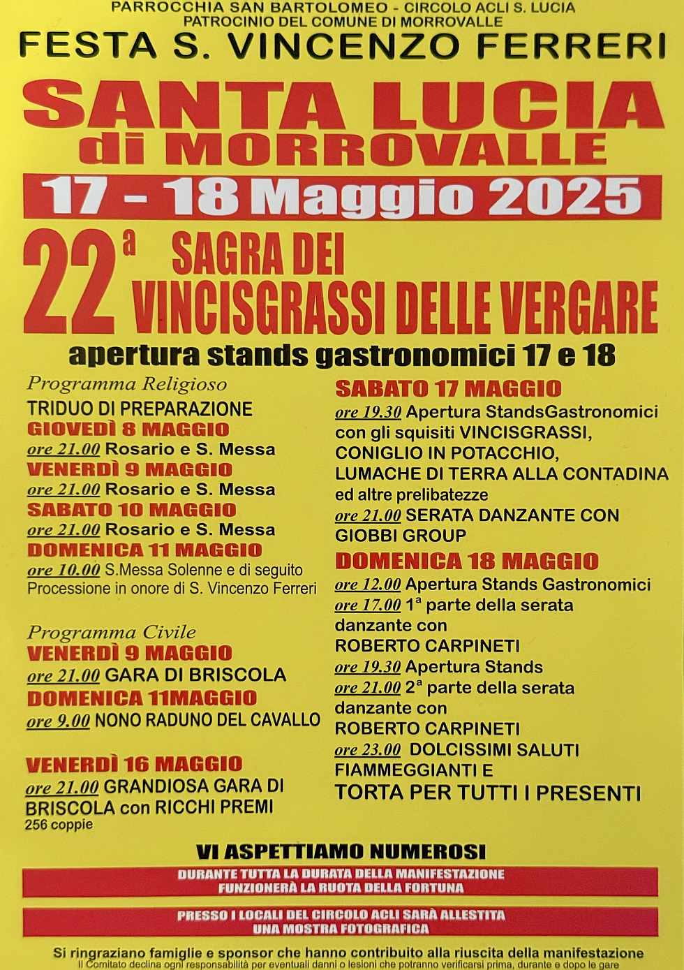 Santa Lucia di Morrovalle (MC) "Sagra dei Vincisgrassi delle Vergare" 17-18 Maggio 2025