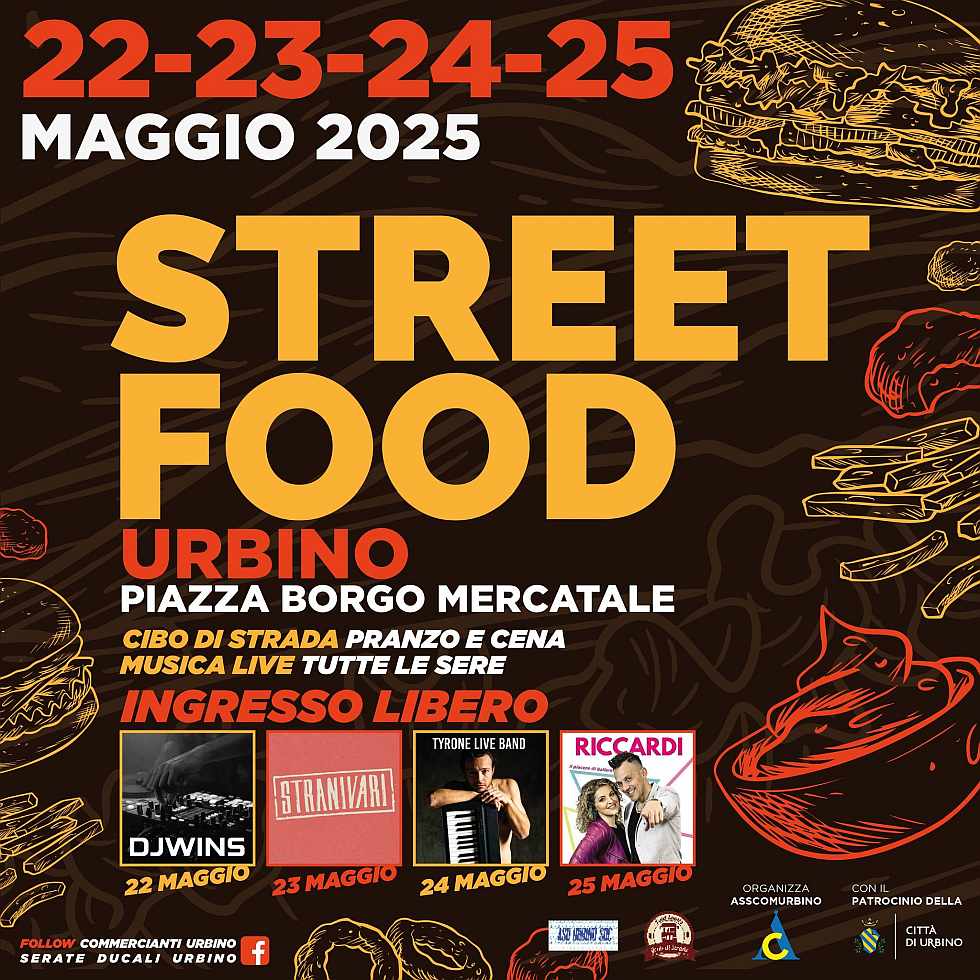 Torna l'immancabile Street Food di Urbino a cura dell'associazione Commercianti e l'associazione Culturale Gente di Strada.