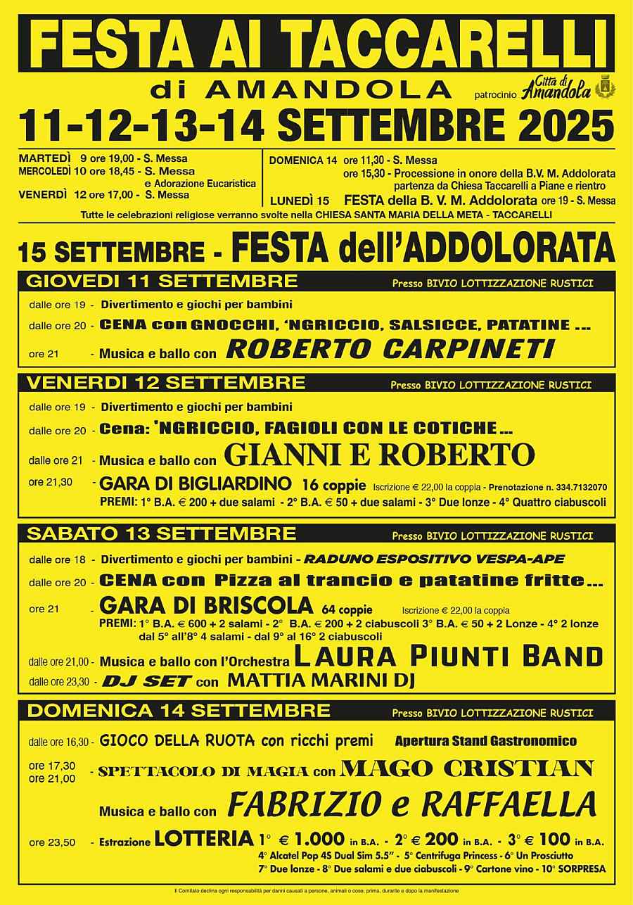 Tradizionale Festa parrocchiale della Frazione Taccarelli di Amandola, organizzata dal Comitato Santa Maria della Meta in onore dell'Addolorata.
