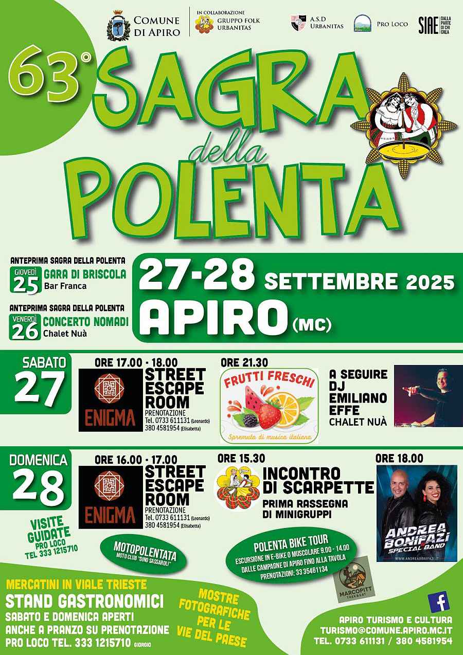 L’ultimo week-end del mese di settembre Apiro si concentra su quella che è la Festa Popolare per eccellenza: la Festa della Polenta.