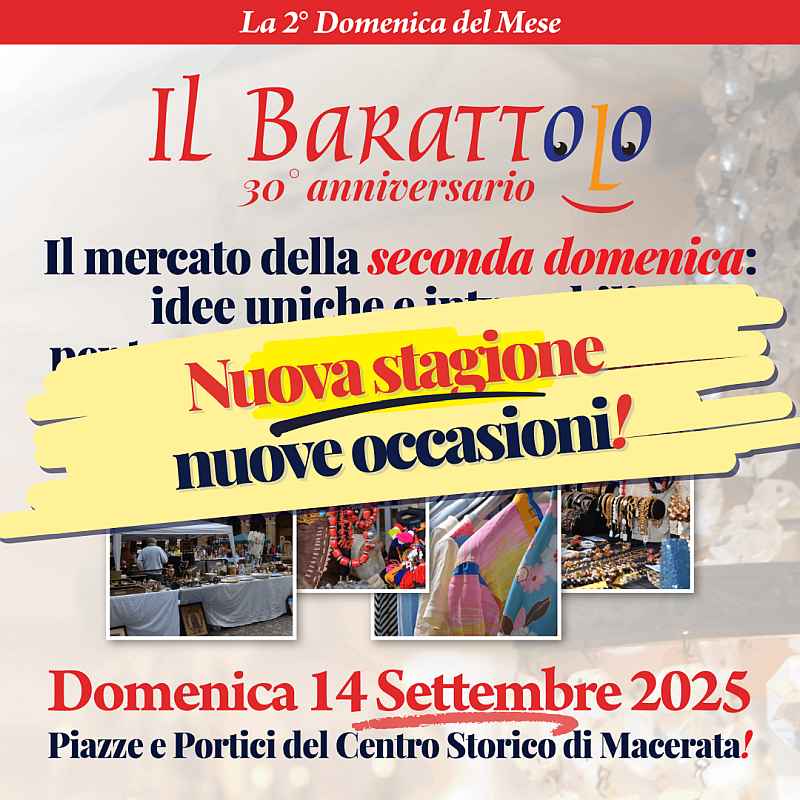 Macerata – Dopo la pausa estiva, il cuore di Macerata torna a battere con uno degli appuntamenti più attesi da pubblico ed espositori: Il Barattolo, il mercatino del fatto a mano, vintage, piccolo antiquariato e collezionismo, sarà protagonista Domenica 14 Settembre 2025, dalle ore 9.00 alle 20.00, con un’edizione ricchissima e diffusa in ben 7 aree del Centro Storico.