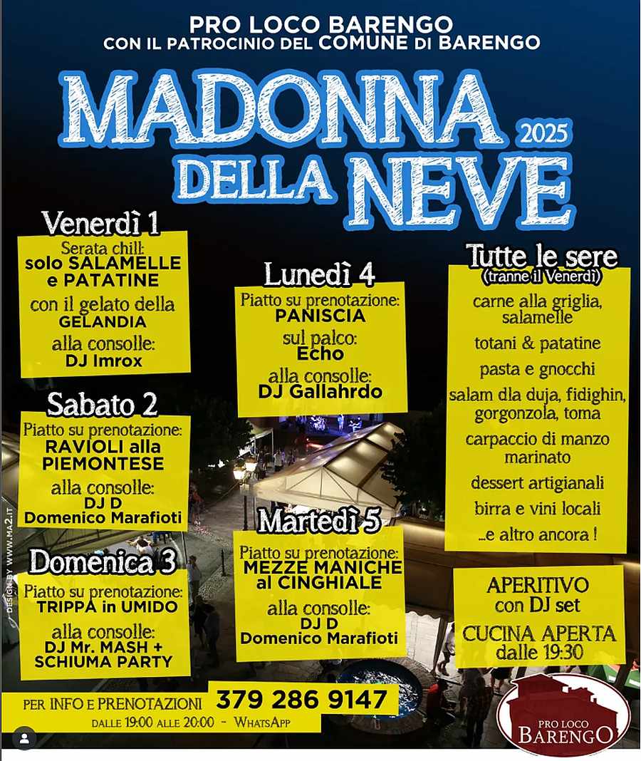 Da Venerdì 1 a Martedì 5 Agosto a Barengo