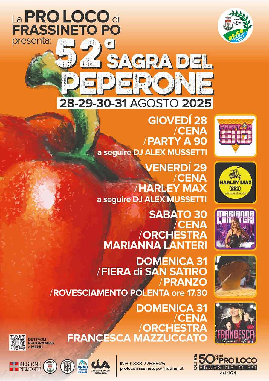 La Sagra del Peperone è un evento gastronomico che celebra uno dei prodotti più rappresentativi e versatili del territorio. È un'occasione per gustare il peperone in tutte le sue forme, dalle ricette più classiche a quelle più innovative, il tutto in un'atmosfera di festa, musica e convivialità.