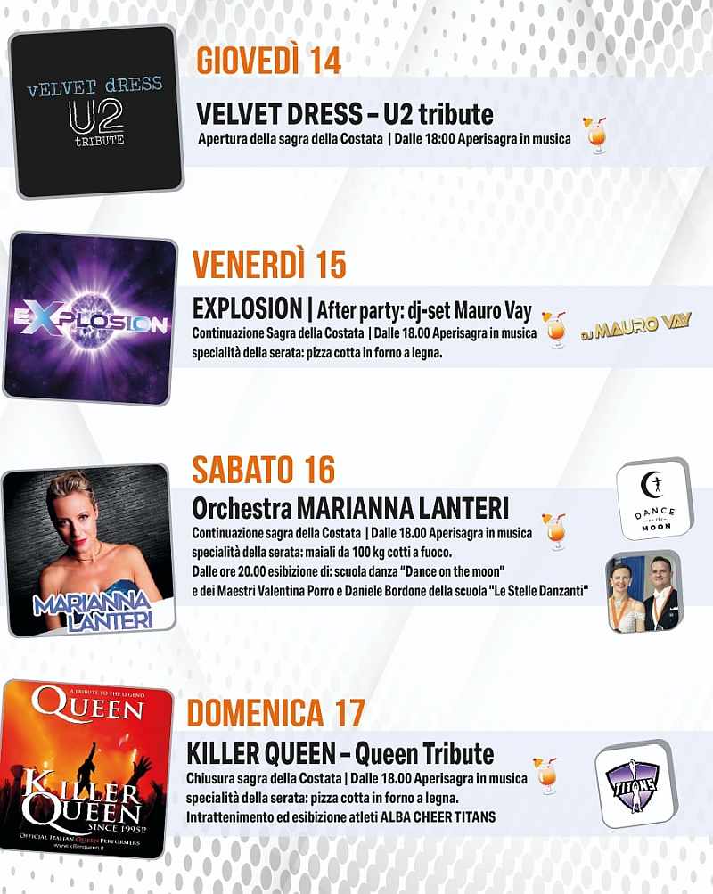 Quattro serate da trascorrere in compagnia con prodotti enogastronomici locali, genuini, altamente selezionati, ottima musica e soprattutto cordialità e allegria