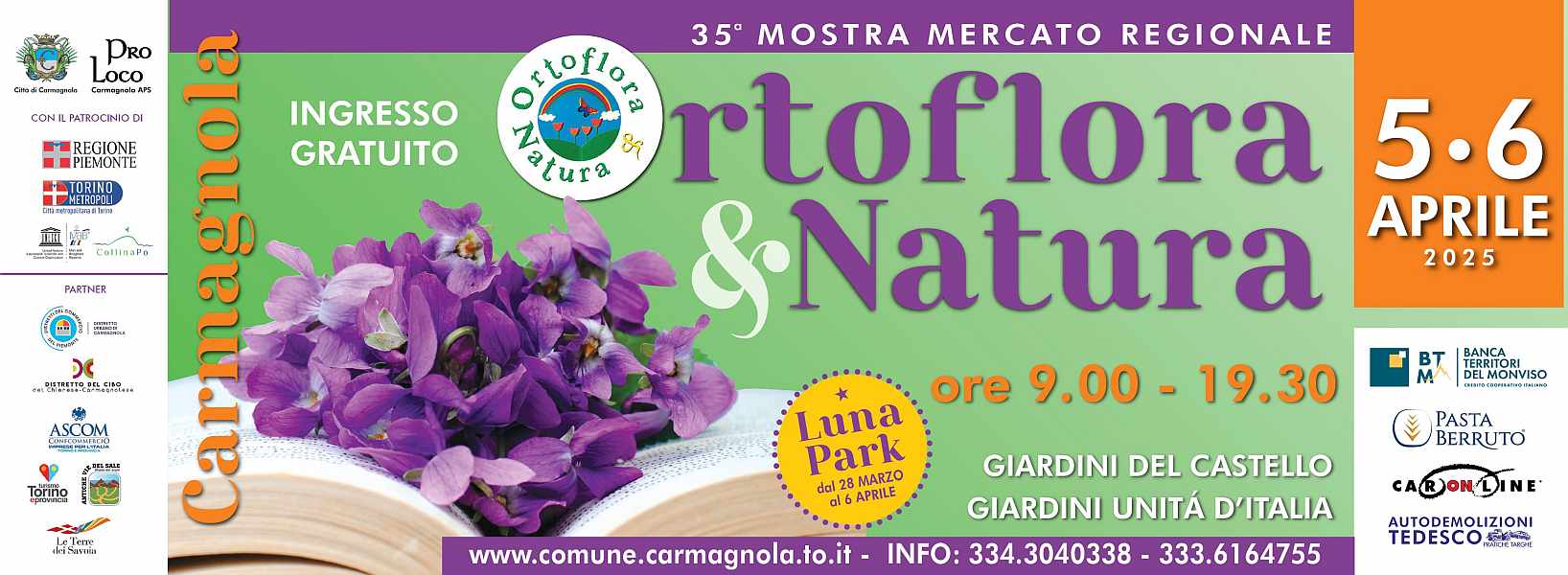 Sabato 5 e domenica 6 aprile, il cuore della Città di Carmagnola si trasforma in un grande giardino a cielo aperto per la 35ª edizione di Ortoflora & Natura, una delle rassegne più importanti in Piemonte dedicate al mondo del florovivaismo e dell’orticoltura!