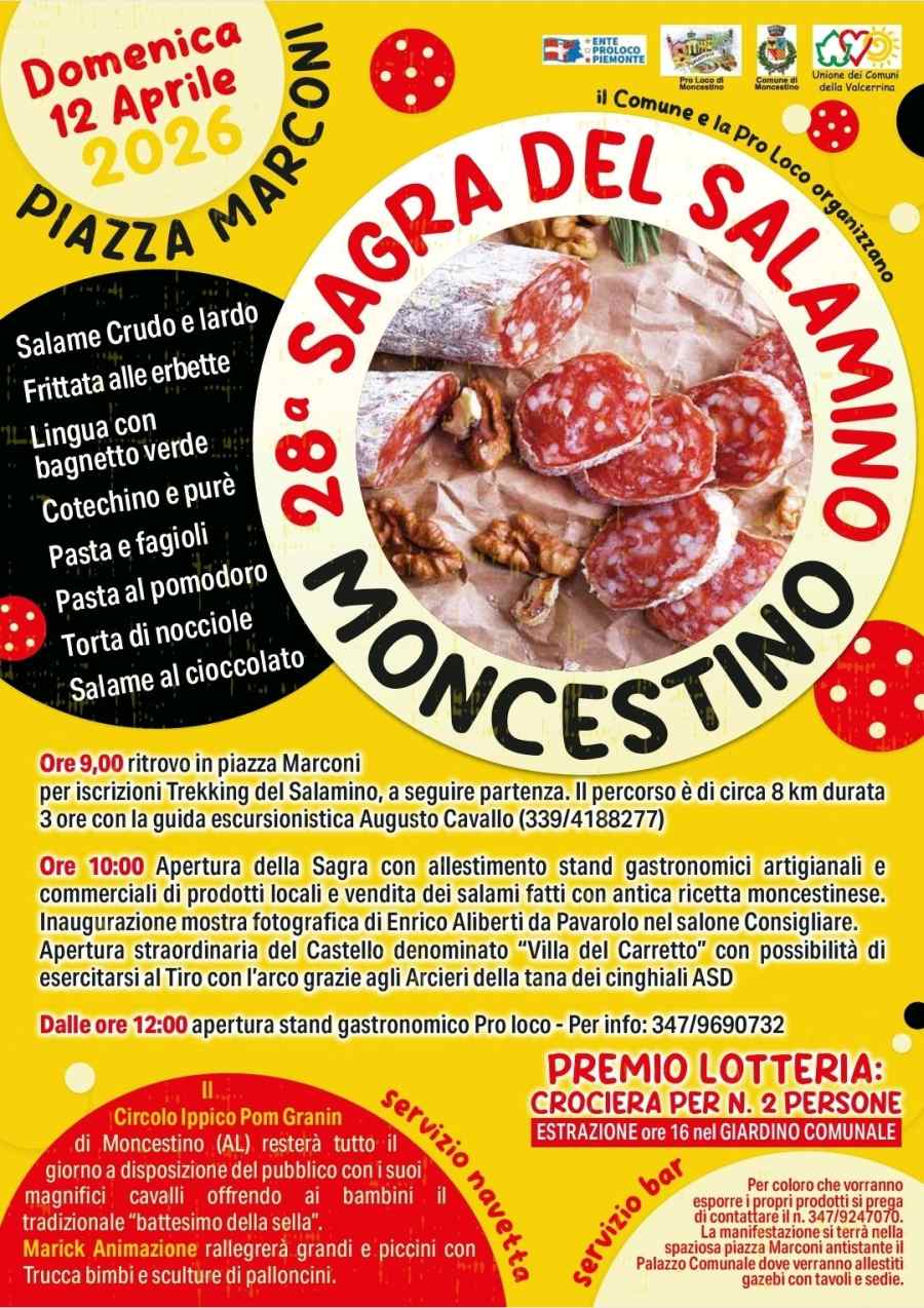 La sagra è una delle manifestazioni più attese della zona e vanta oltre 25 anni di storia. Nasce per valorizzare il salamino di Moncestino, prodotto seguendo un'antica ricetta locale tramandata nel tempo.