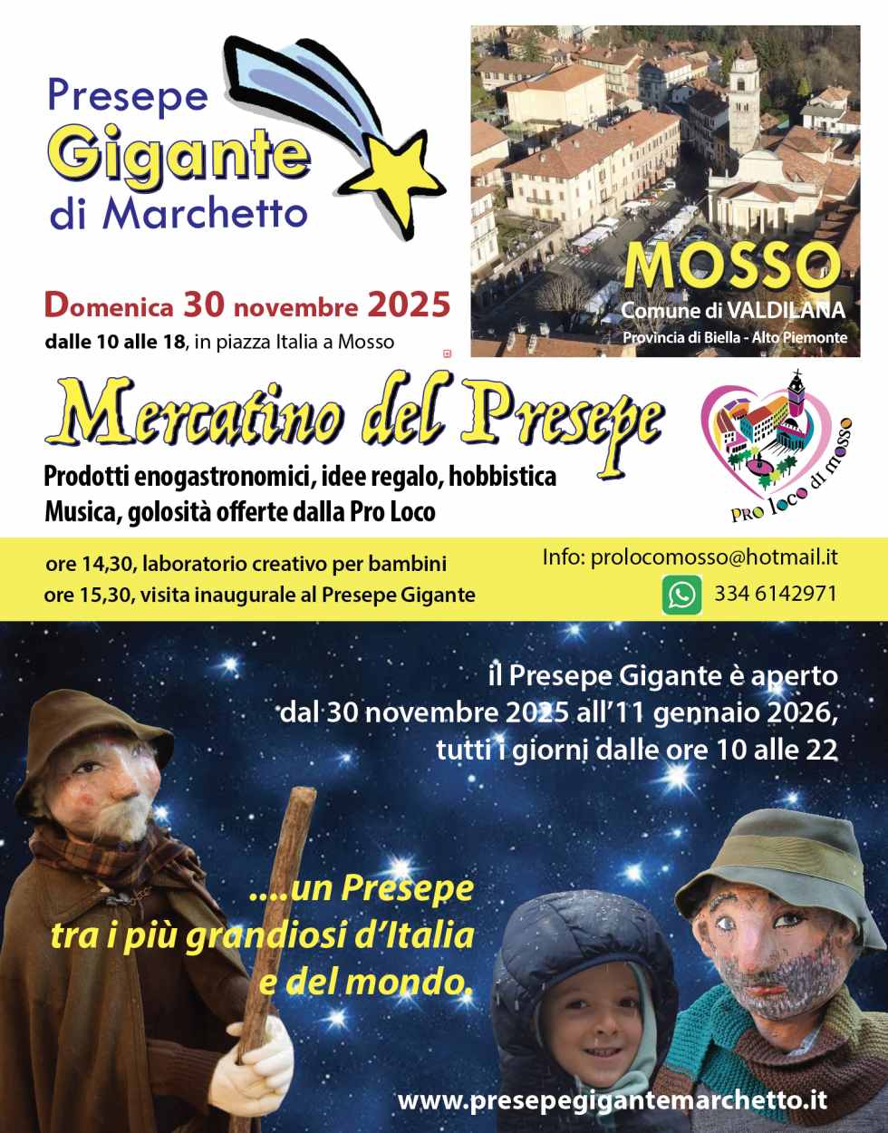 alle ore 20,00 ritorna la tradizionale fiaccolata con partenza dal Presepe Gigante a Mosso.