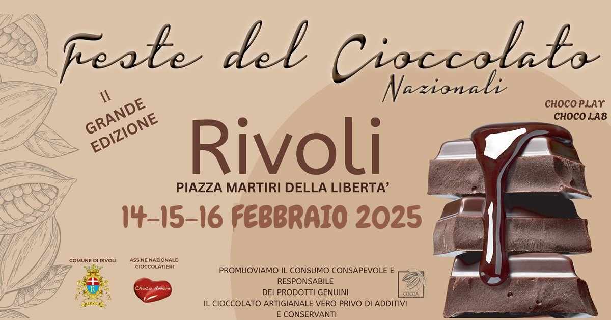 Arriva a Rivoli, in Piazza Martiri della Libertà, dal 14 al 16 Febbraio 2025, la II grande edizione della Festa del Cioccolato Artigianale!