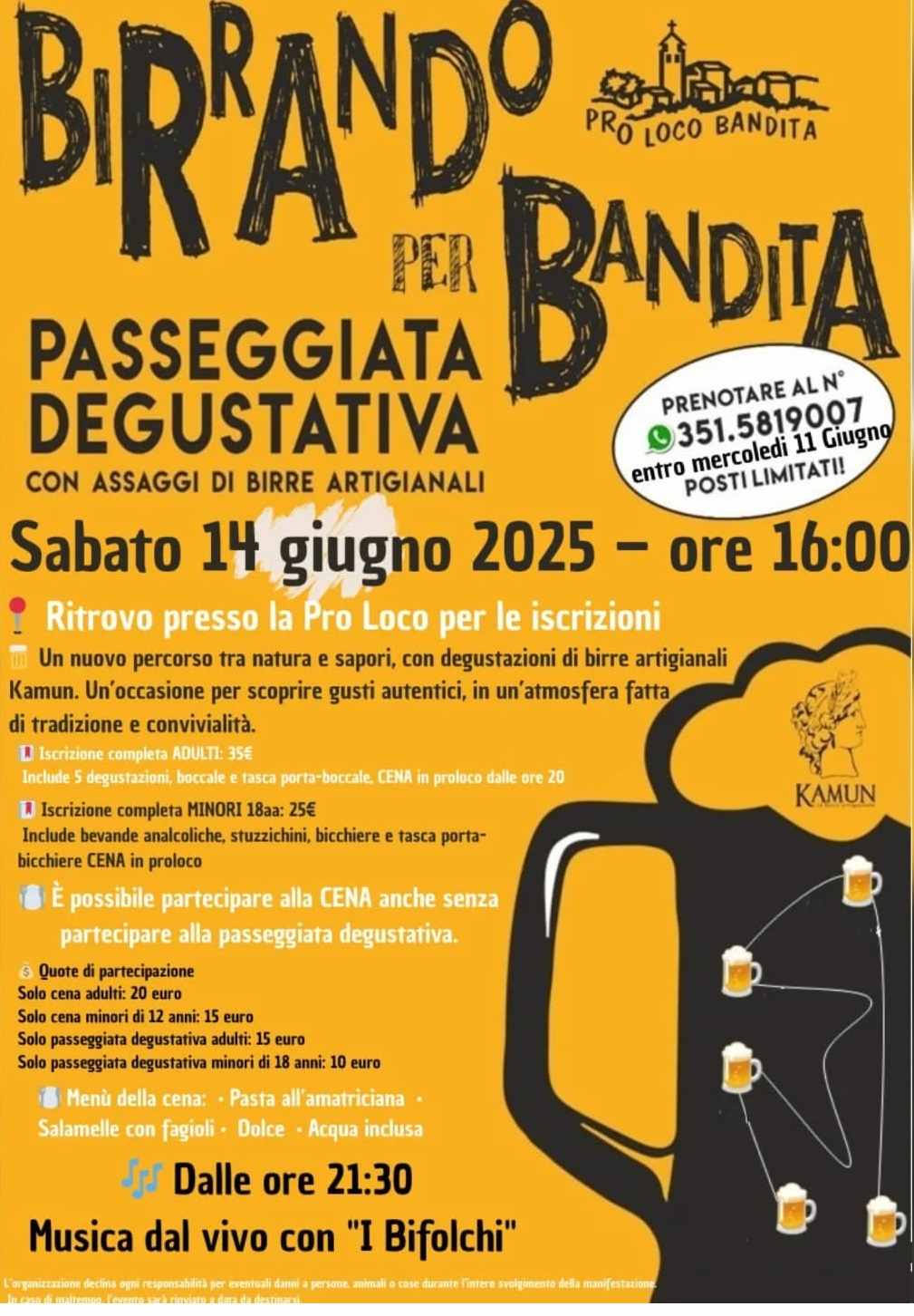 Prenotazioni Whatsapp al 351 581 9007 entro mercoledì 11 giugno