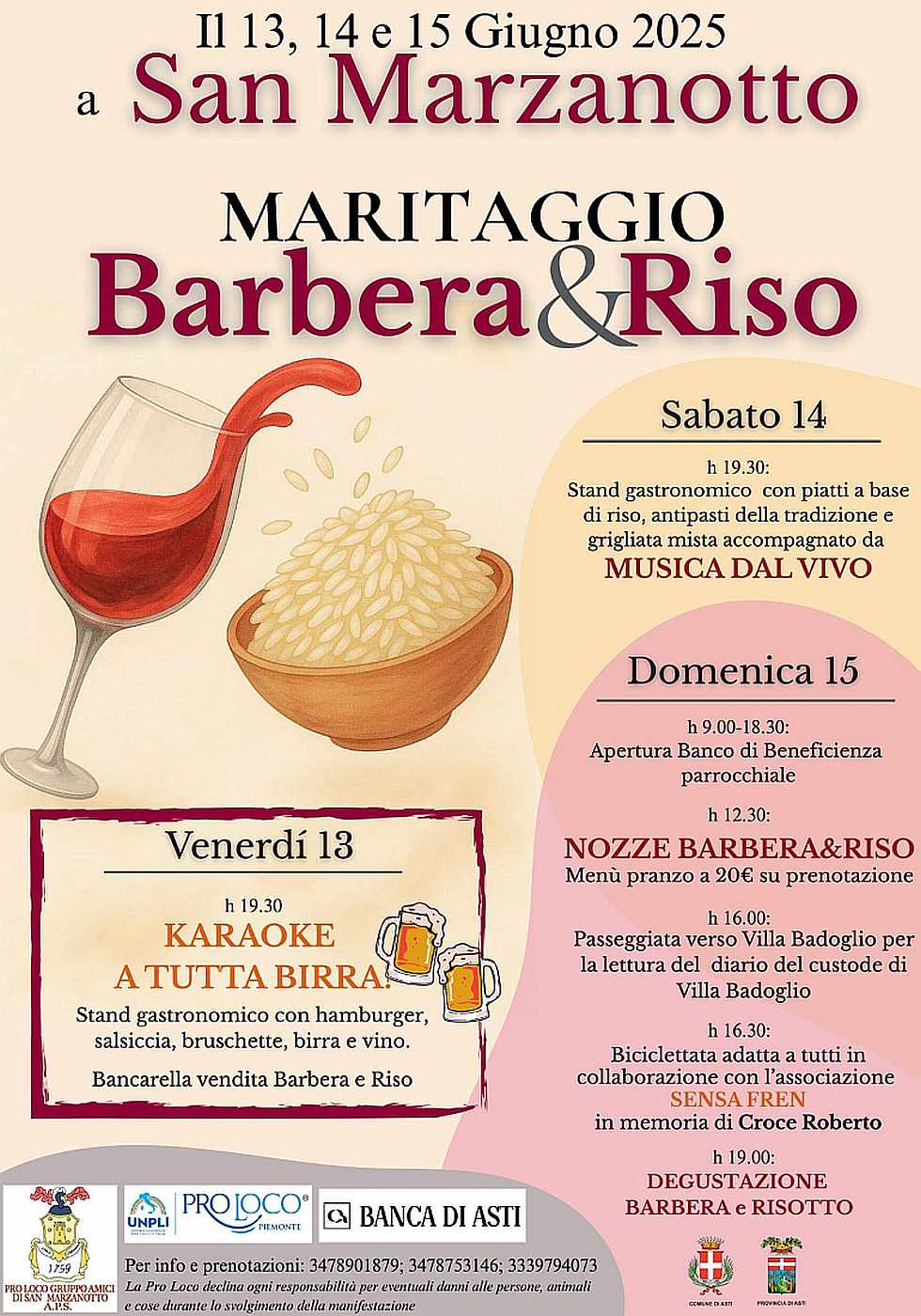 Momento conclusivo del MARITAGGIO tra riso e barbera è la distribuzione del risotto, accompagnato da vino barbera alle ore 19.