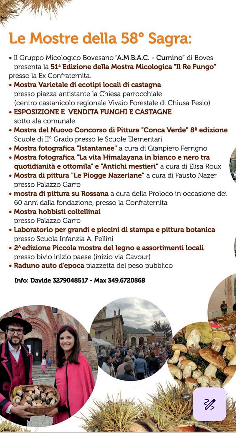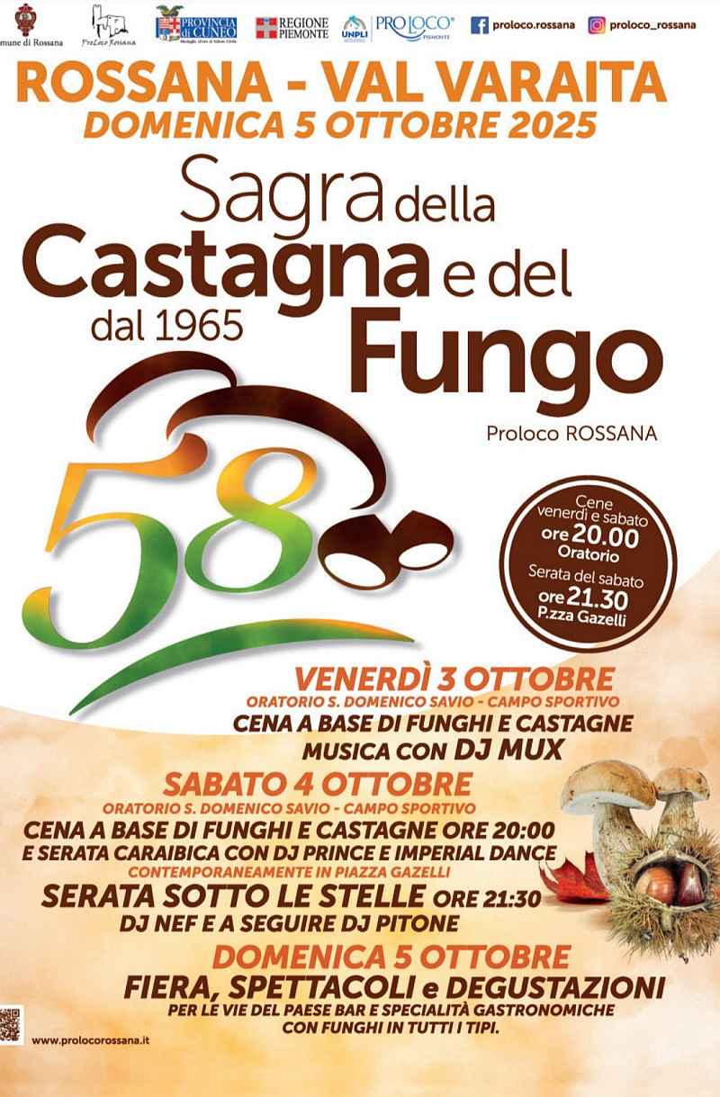 Ritorna come ogni anno dal 1965 la Sagra della Castagna 🌰 e del fungo 🍄🟫 di Rossana.