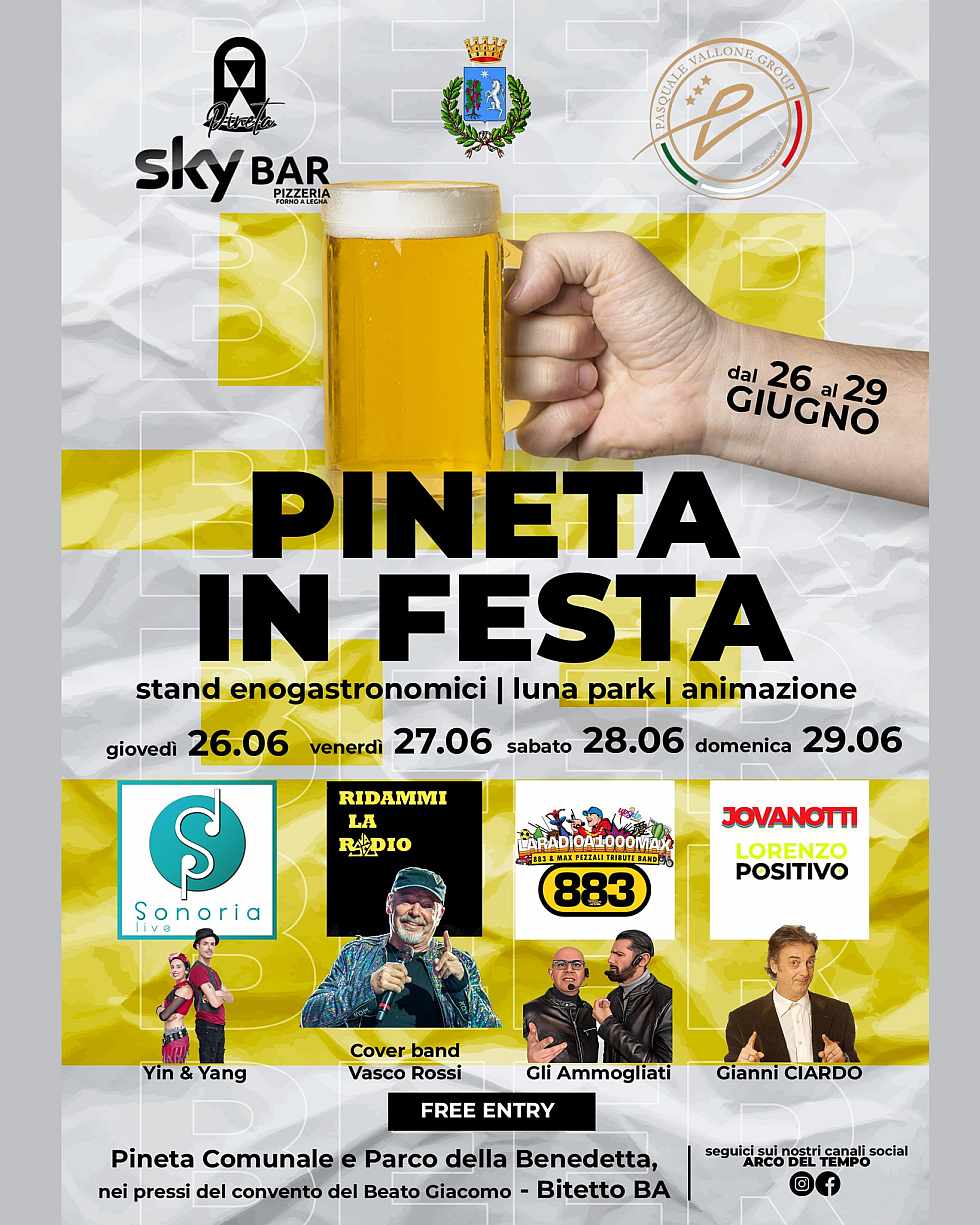Pineta in Festa presso la Pineta Comunale e il Parco della Benedetta: 4 giorni di eventi imperdibili, artisti dal vivo, comicità e buon cibo!