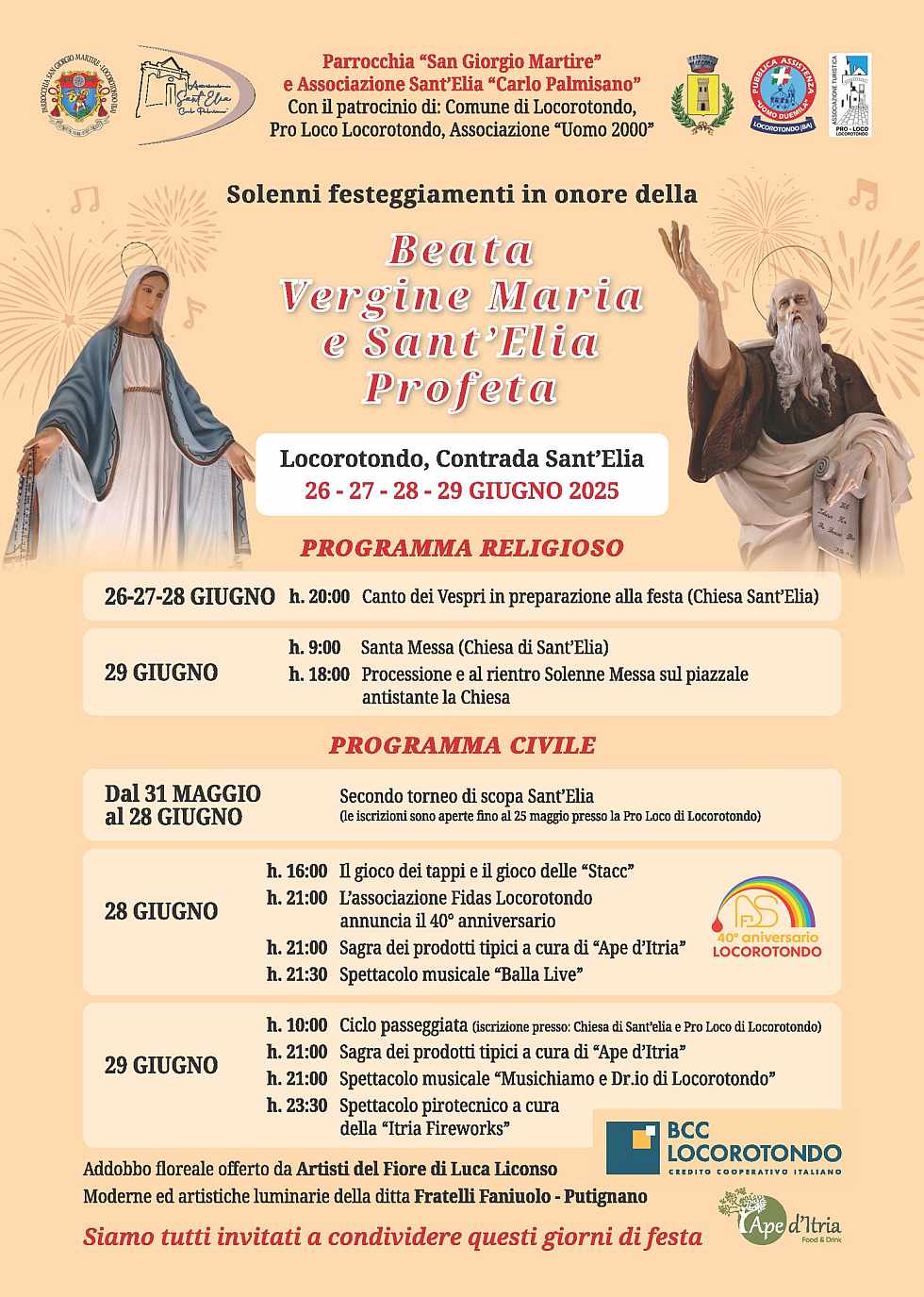 Locorotondo (BA) "Festeggiamenti in Onore della B.V. Maria e Sant'Elia Profeta" 26-27-28-29 Giugno 2025