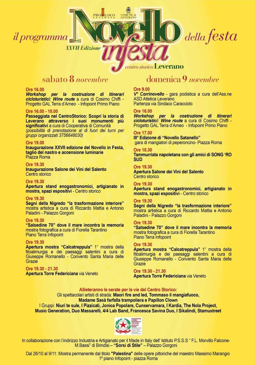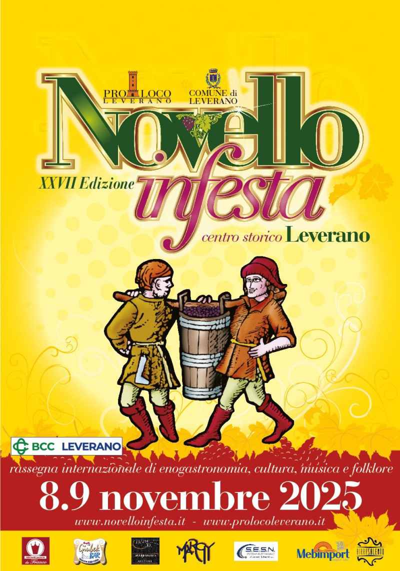 Il "Novello in Festa" a Leverano (LE) è la più grande e attesa manifestazione enogastronomica del Salento dedicata alla celebrazione del vino novello e dei Vini Rossi del Salento. Leverano è un comune di antica tradizione vitivinicola e sede di importanti cantine.