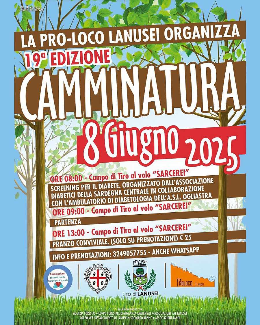 – Ore 08:00 | Ritrovo al Campo di Tiro al Volo “Sarcerei”, dove si svolgerà uno screening gratuito per il diabete, a cura dell’Associazione Diabetici della Sardegna Centrale, in collaborazione con l’Ambulatorio di Diabetologia della A.S.L. Ogliastra.