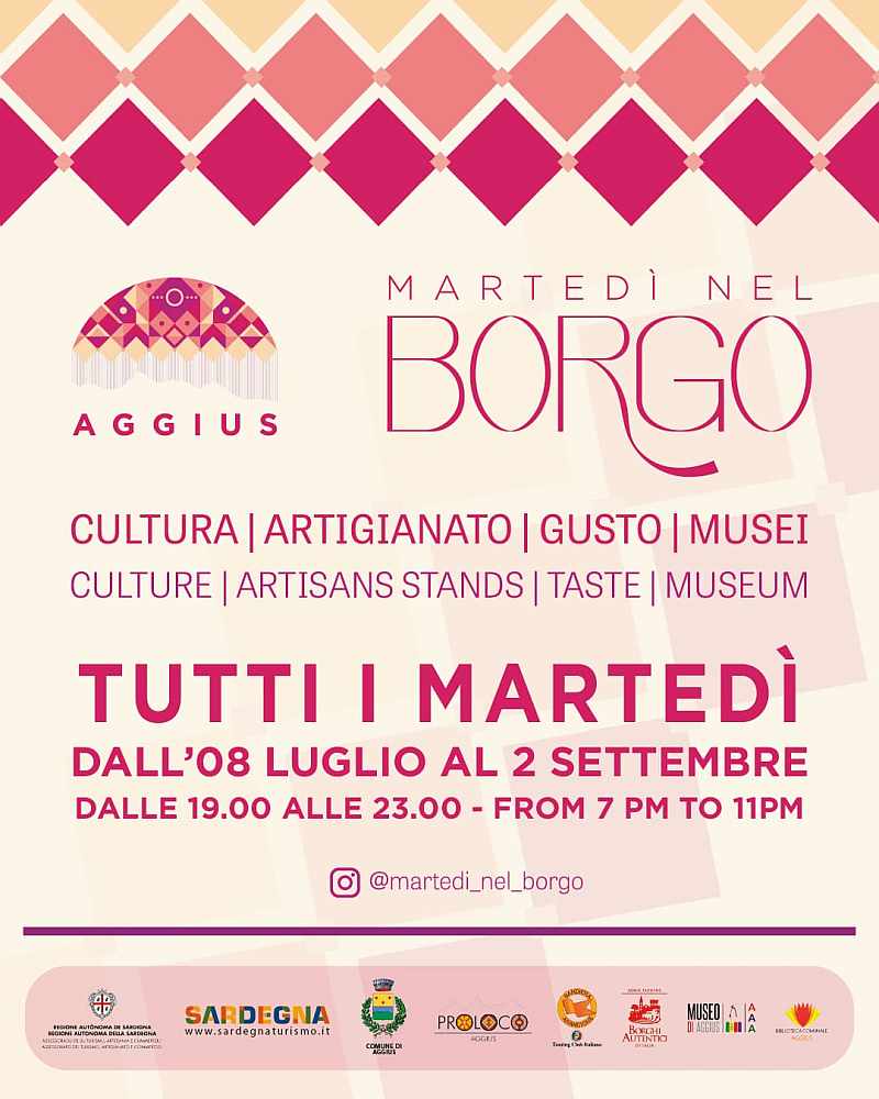 La Pro Loco di Aggius, in collaborazione con L'Assessorato al Turismo della Regione Sardegna e il Comune, annuncia il ritorno di “Martedì nel Borgo”, la manifestazione che da sette anni anima con successo le serate estive del paese i martedì di luglio, agosto e settembre.