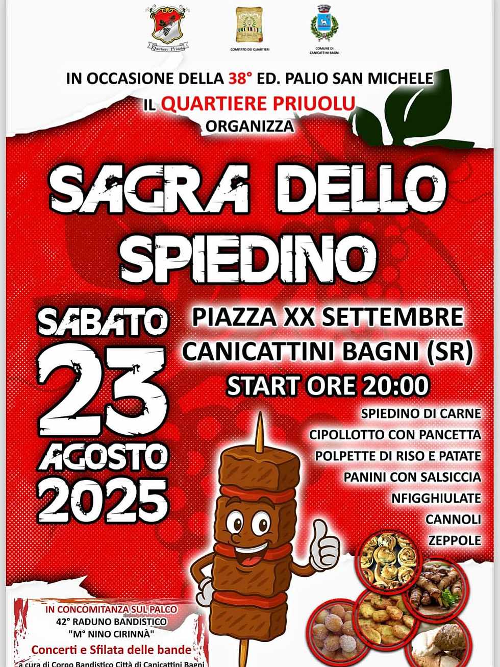 il quartiere PRIUOLU vi invita più carico che mai alla SAGRA DELLO SPIEDINO in Piazza XX Settembre..