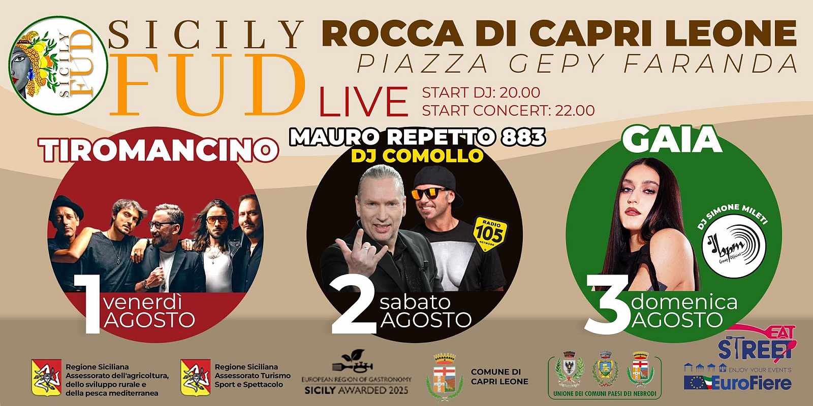 Tre serate. Tre concerti. Un’esplosione di Sicilia...e tutto intorno il profumo irresistibile dello street food più buono del mondo: il nostro. Quello siciliano.