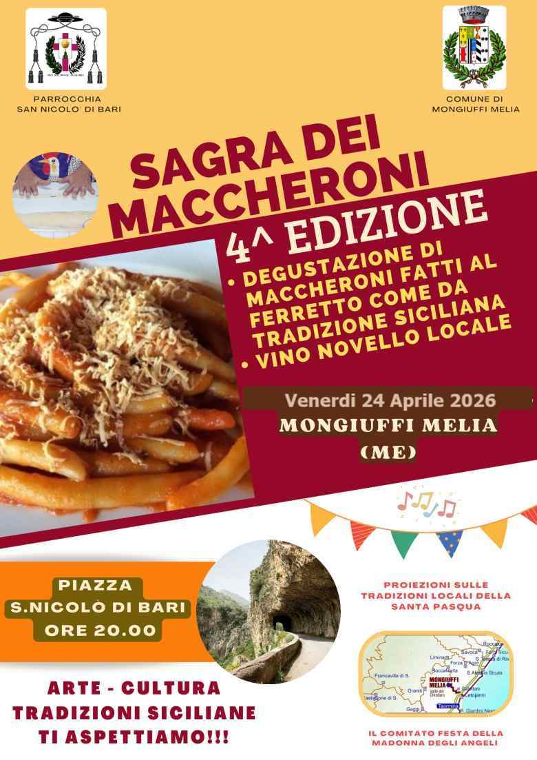 Tra gli eventi più attesi della manifestazione, sicuramente la sagra dei maccheroni siciliani fatti al ferretto, sarà un'occasione unica per assaporare la cucina tradizionale siciliana, gustando i prelibati maccheroni fatti al ferretto conditi con il sugo di carne, il tutto accompagnato da ricotta infornata e vino della Valle del Ghiodaro.