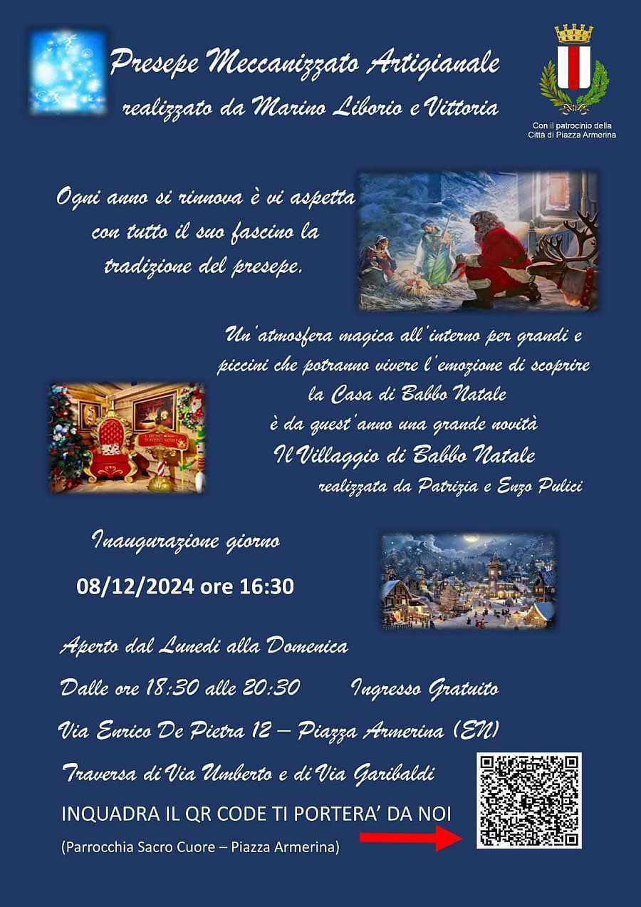 Piazza Armerina ospita il presepe meccanizzato più grande della Sicilia centrale, realizzato da Liborio e Vittoria Marino,interamente con lavorazioni artigianali.