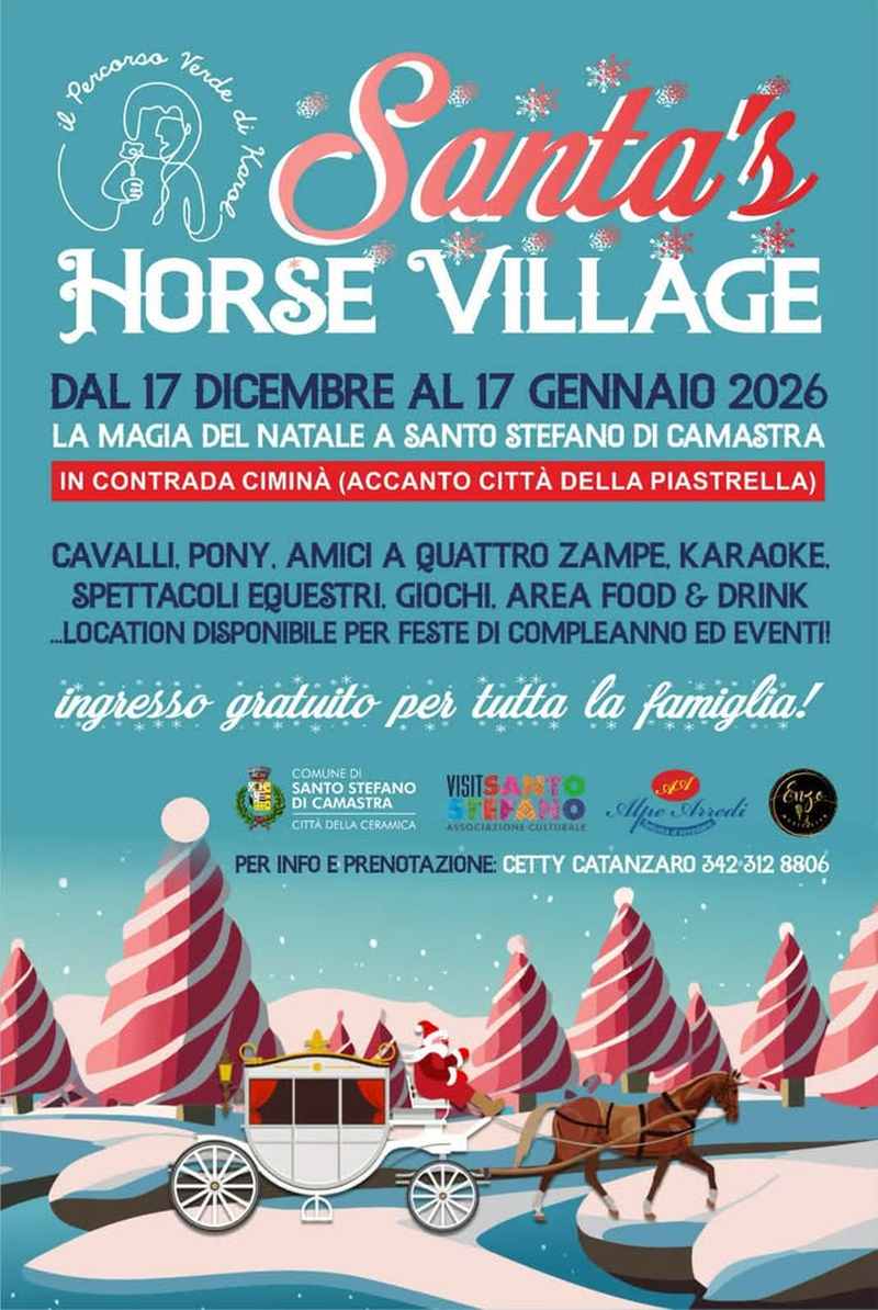 Il Natale è alle porte e la magia è già nell'aria! A Santo Stefano di Camastra, in Contrada Ciminà snc, è pronto a prendere vita il Santa's Horse Village, un evento unico e indimenticabile per tutta la famiglia.