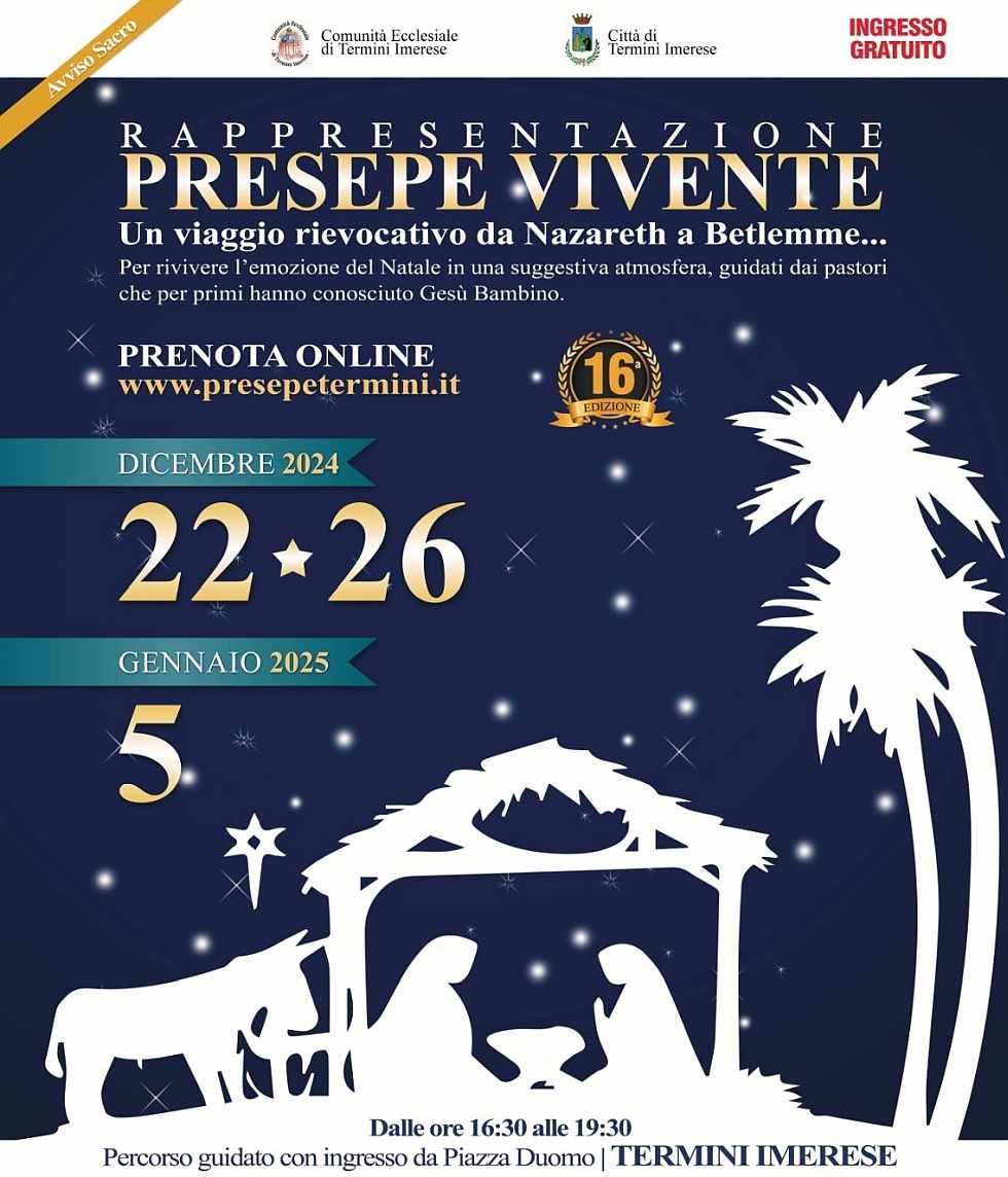 Il Presepe Vivente di Termini Imerese, organizzato dalla Comunità Ecclesiale Termitana, arrivata alla sua XVI edizione colorerà e riscalderà il centro storico termitano.