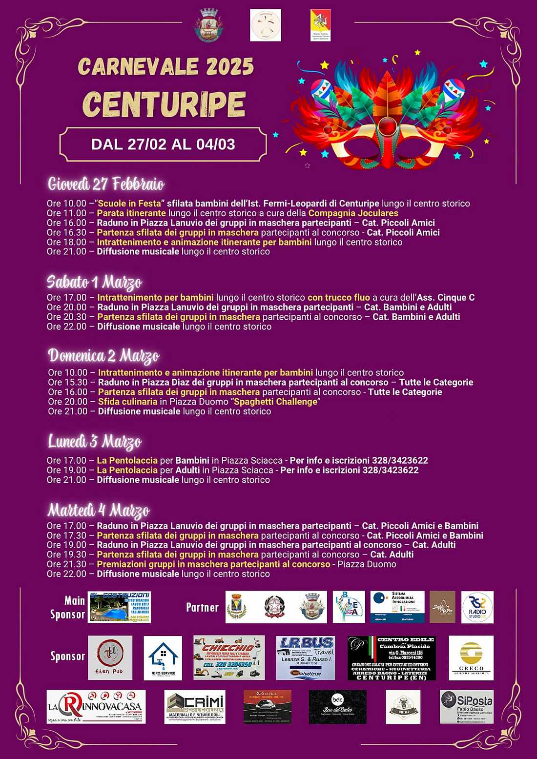Il programma del Carnevale di Centuripe prevede eventi per tutte le età, dai bambini agli adulti.