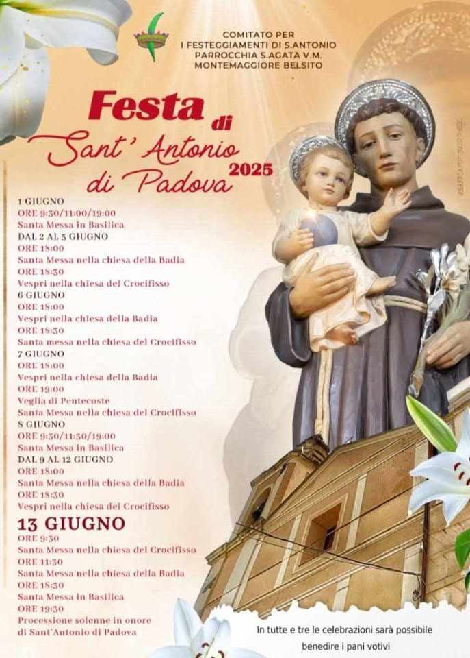 Il 13 giugno, la comunità di Montemaggiore Belsito, in provincia di Palermo, si riunisce per celebrare la festa di Sant'Antonio di Padova, un santo molto venerato nella regione.