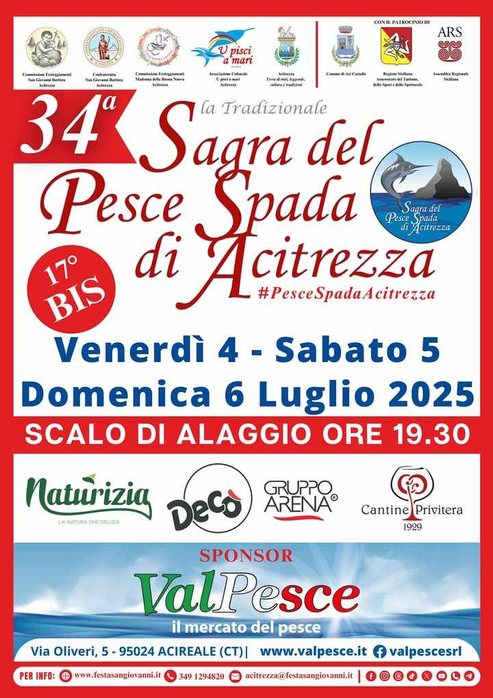 Anche quest’anno, su quattro grandi griglie, verrà cucinato del buon pesce spada, pescato dalle tradizionali “spadare” trezzote, che sarà poi condito con olio, limone, origano, sale ed insalata fresca.