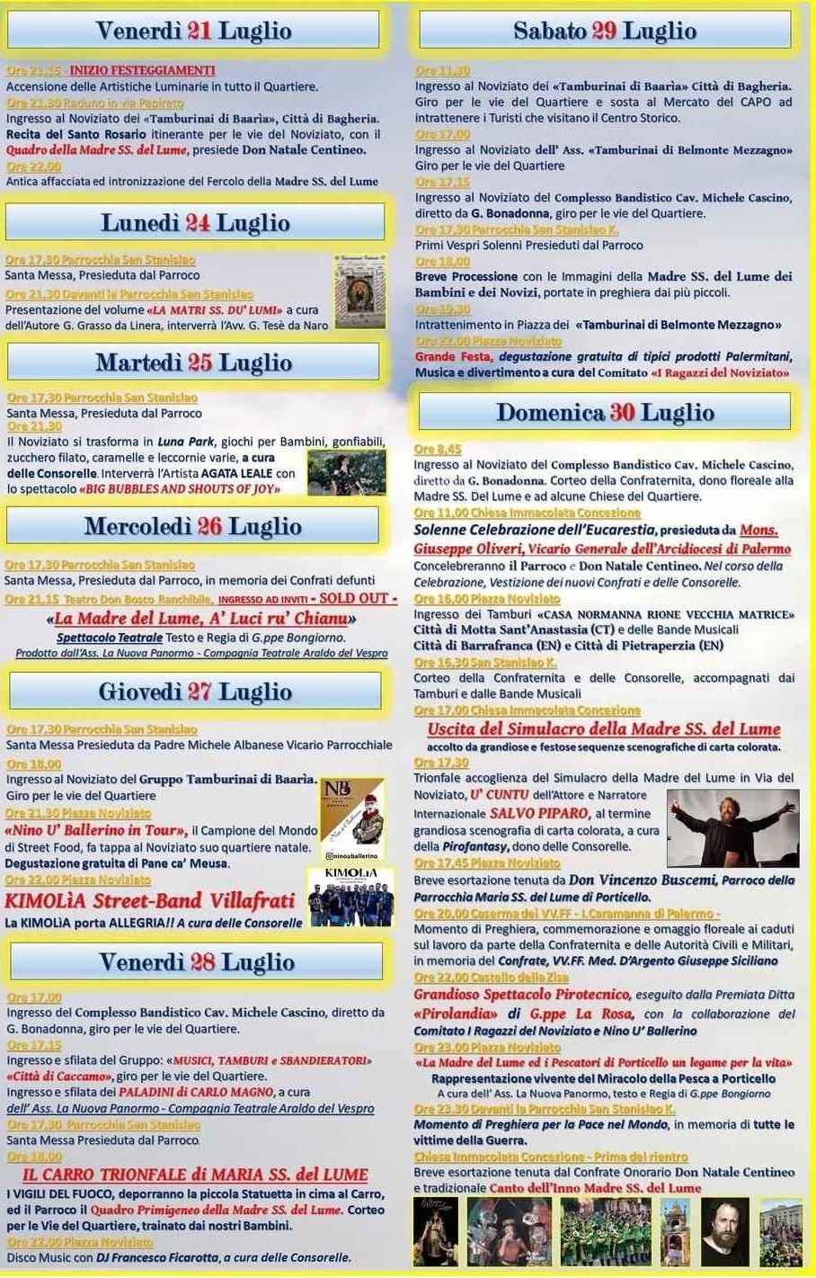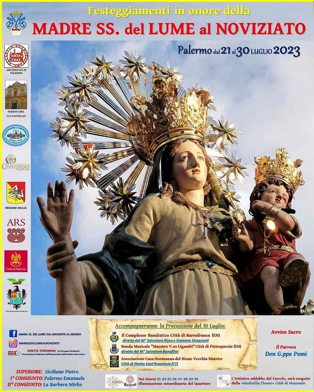 Palermo "Festeggiamenti in onore della Madre SS. del Lume al Noviziato" dal 21 al 30 Luglio 2023