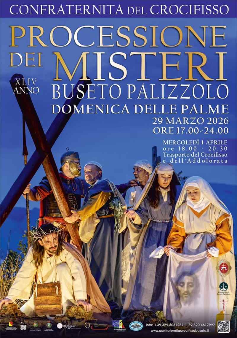 La Processione dei Misteri di Buseto Palizzolo (Trapani) è una delle celebrazioni più suggestive e particolari della Settimana Santa in Sicilia. A differenza di altre processioni, qui i "Misteri" non sono statue, ma quadri viventi: persone del luogo che restano immobili su carri addobbati, rappresentando scene della Passione di Cristo.