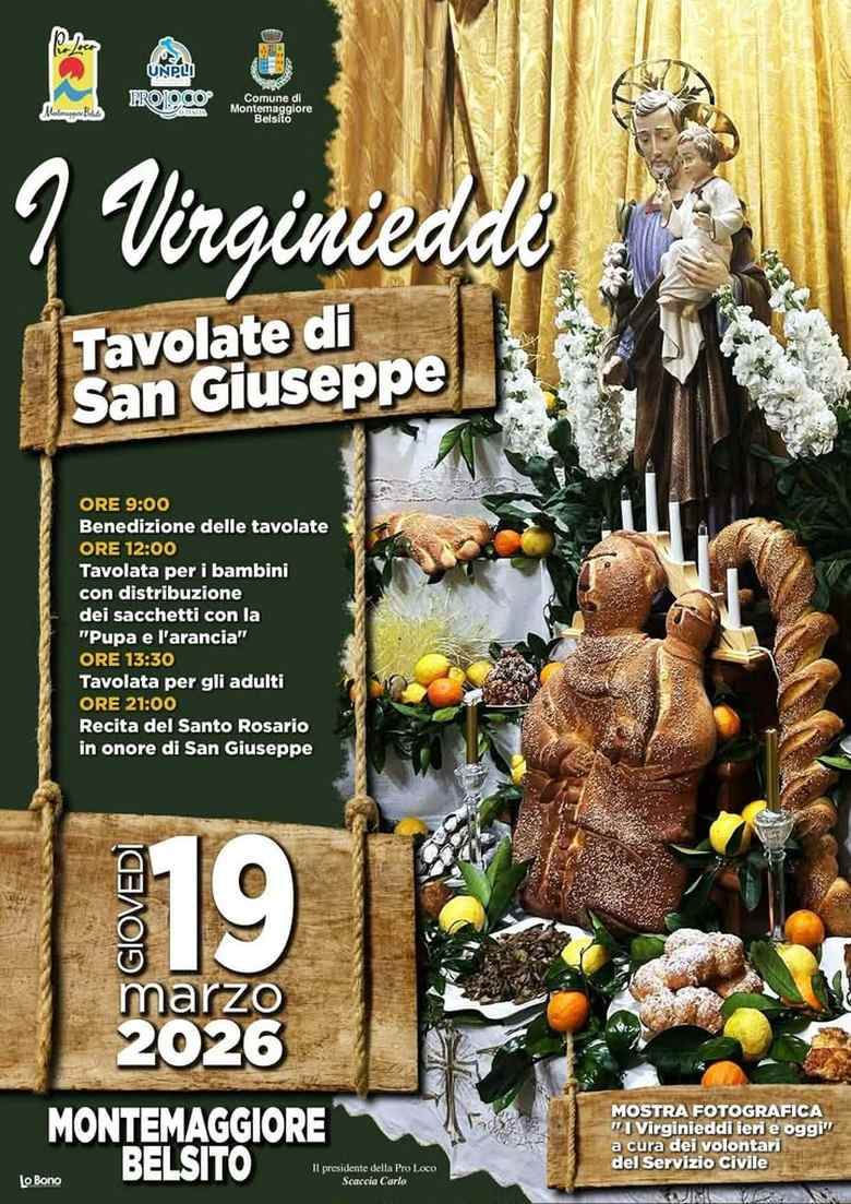 La festa dei "Virginieddi" è una delle più antiche e sentite tradizioni di Montemaggiore Belsito, che si celebra ogni anno in onore di San Giuseppe. La comunità si riunisce per preparare e condividere i tipici manicaretti della tradizione siciliana, come la pignolata, i cannuola e le soffici "sfince" di San Giuseppe, farcite in vari gusti, tutte preparate con amore e cura con ingredienti autoctoni locali.