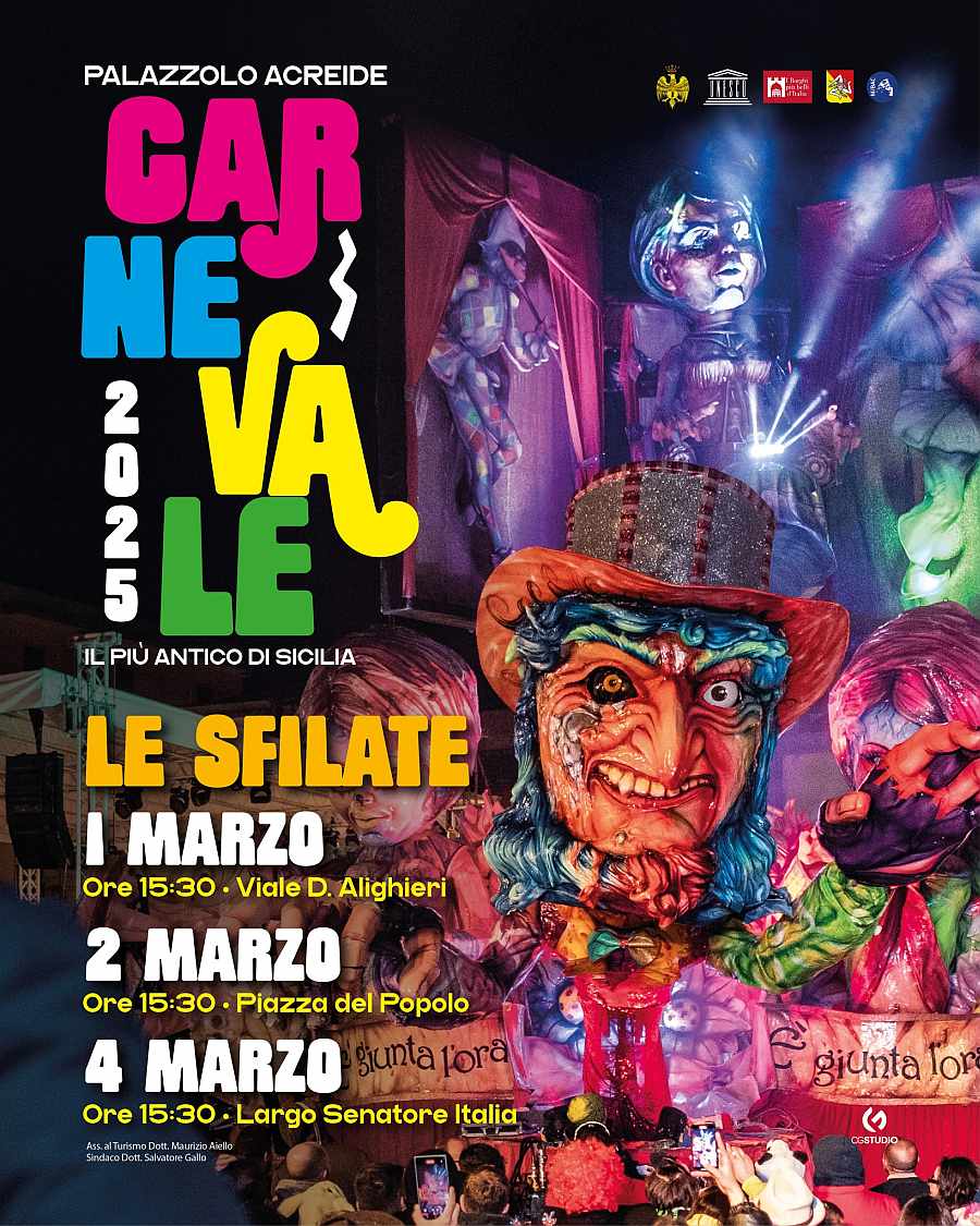 A Palazzolo Acreide il Carnevale è un’esplosione di musica, colori e tradizione: carri allegorici spettacolari, gruppi mascherati e tanto divertimento per grandi e piccini.