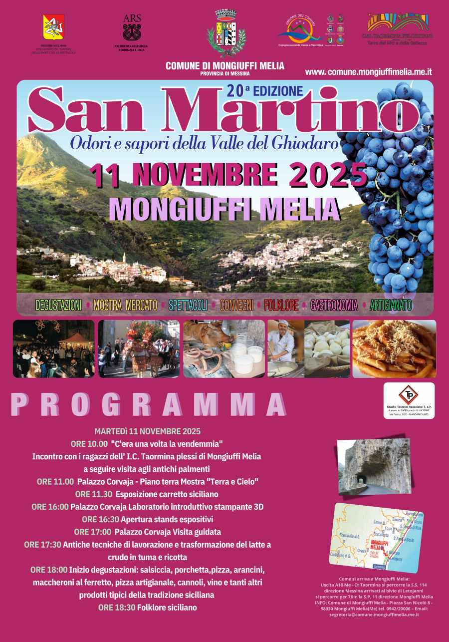La manifestazione "San Martino - Odori e sapori della Valle del Ghiodaro" a Mongiuffi Melia (ME) è una storica e attesa mostra mercato e sagra che celebra il patrimonio enogastronomico e le tradizioni della Sicilia, in particolare della suggestiva Valle del Ghiodaro.