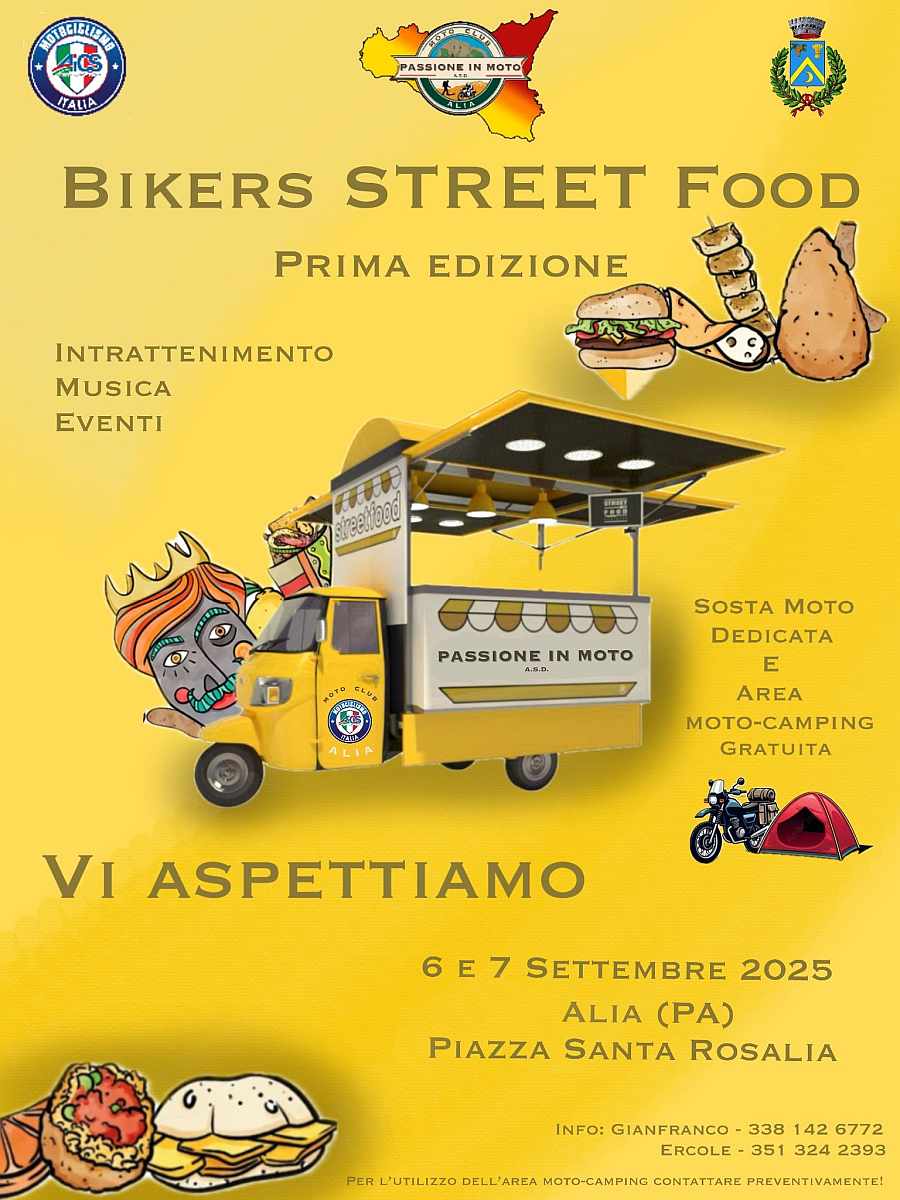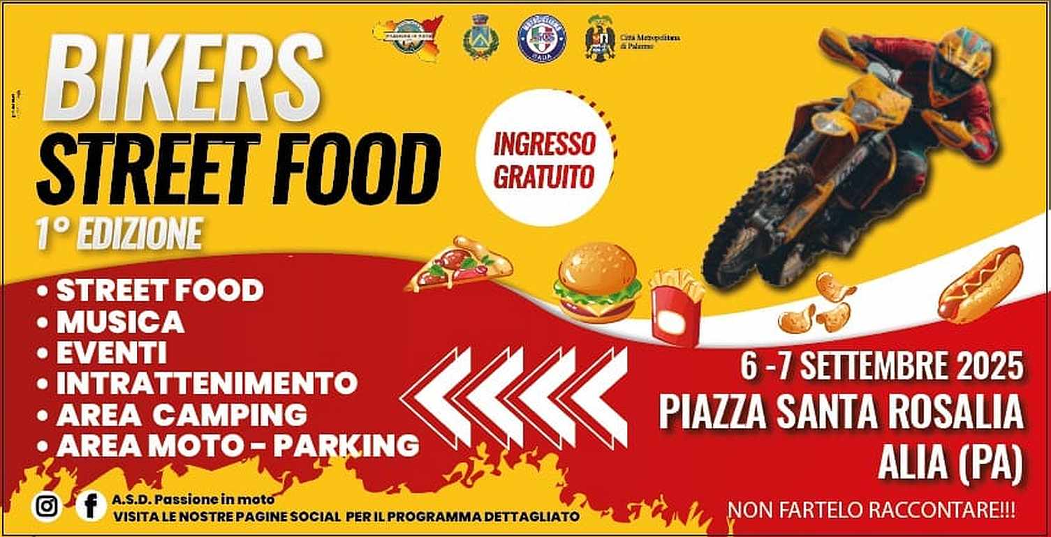 sabato 6 settembre vi aspettiamo in piazza Santa Rosalia ad Alia (PA), per la prima edizione del "Bikers Street food".