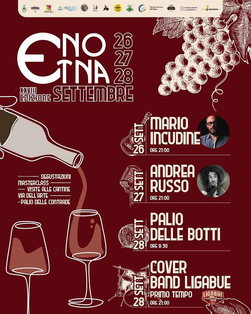 Dal 26 al 28 settembre torna a Santa Venerina, un pittoresco borgo alle pendici dell'Etna, una delle manifestazioni storiche più amate: EnoEtna, giunta alla sua XXVIII edizione.