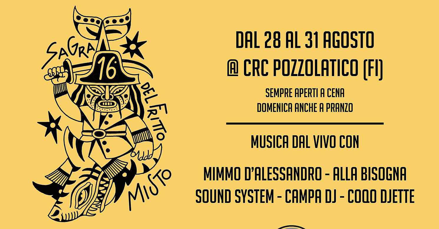 Nei locali del CRC di Pozzolatico (FI) dal 28 al 31 agosto si terrà la 16^ Sagra del Fritto Misto organizzata dalla Società Cooperativa Sportiva Dilettantistica Centro Storico Lebowski.