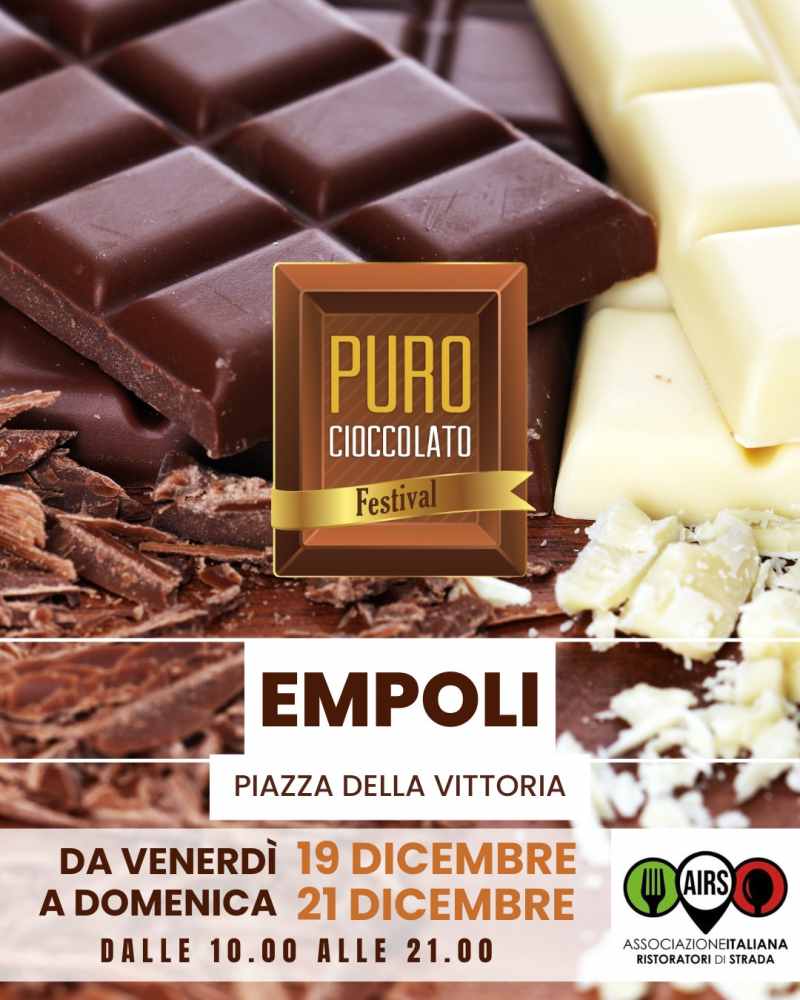 Il viaggio del tanto atteso Puro Cioccolato Festival 2025 continua con una nona tappa imperdibile: da venerdì 19 a domenica 21 dicembre, Piazza della Vittoria a Empoli si trasformerà in un teatro a cielo aperto della dolcezza, con orario continuato dalle 10 alle 21. Questa tappa si svolgerà all’interno di Empoli Città del Natale – Edizione 2025, storica manifestazione natalizia ideata e organizzata da Eros Condelli, presidente di Confercenti Empoli, che negli anni ha conquistato il cuore del pubblico proveniente da tutta Italia.