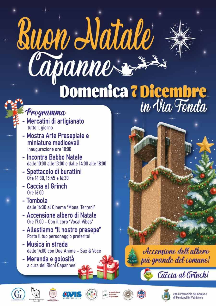 🎅 A Capanne torna l’atteso evento BUON NATALE CAPANNE, organizzato dalle Associazioni Capannesi, per condividere insieme la magia e i valori autentici del Natale.