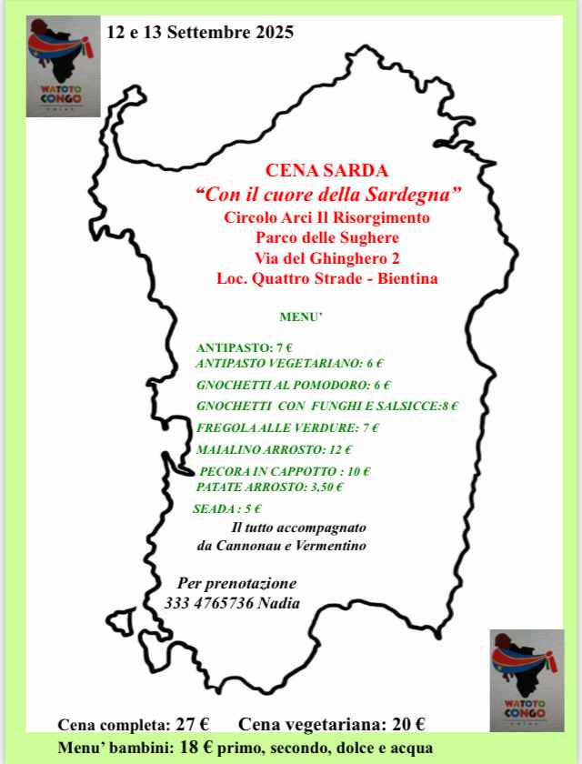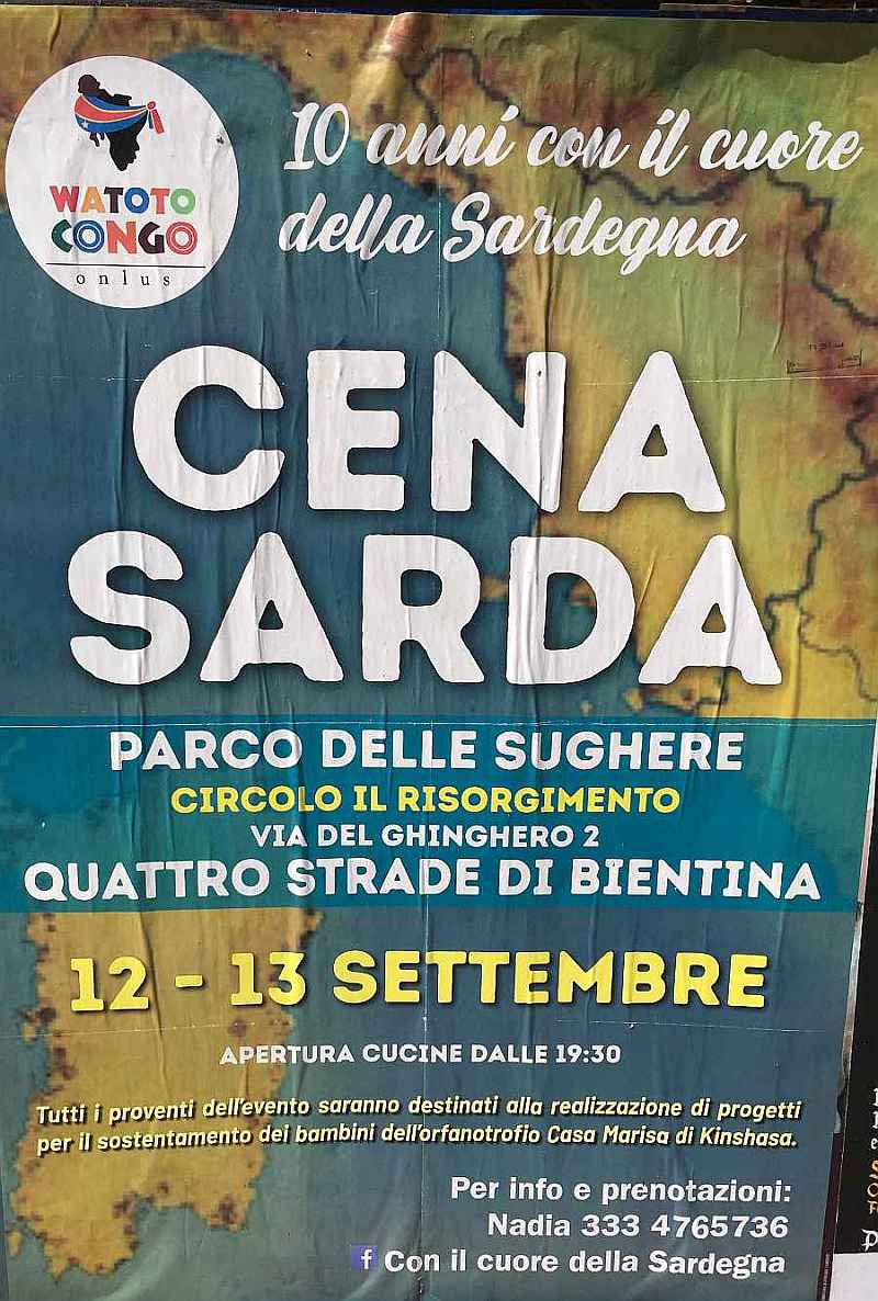 Presso il Circolo Ricreativo "il Risorgimento" Località Quattro Strade, Via del Ghinghero 2, Bientina (PI), la "CENA SARDA" organizzata dall'Associazione Con il Cuore della Sardegna".