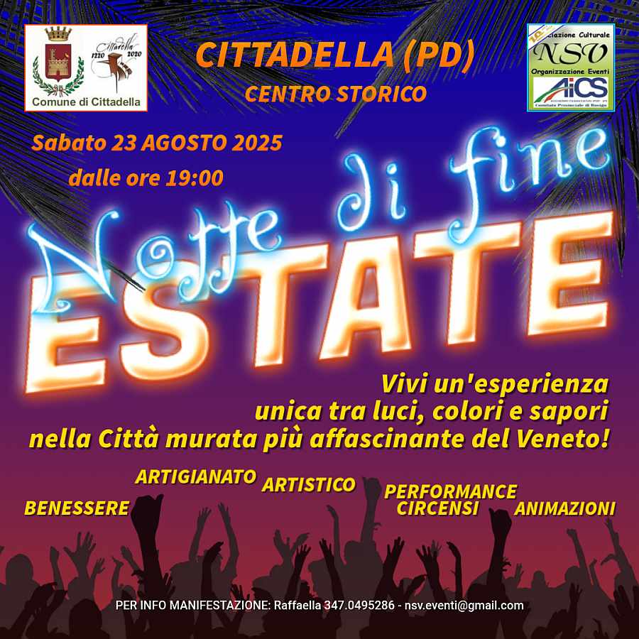 Cittadella (PD) si prepara a vivere una serata speciale all’insegna della bellezza, della condivisione e dell’emozione: Sabato 23 Agosto 2025 si svolgerà la “Notte di fine Estate”, un evento pensato per accogliere famiglie, giovani e turisti in un’atmosfera festosa e coinvolgente.
